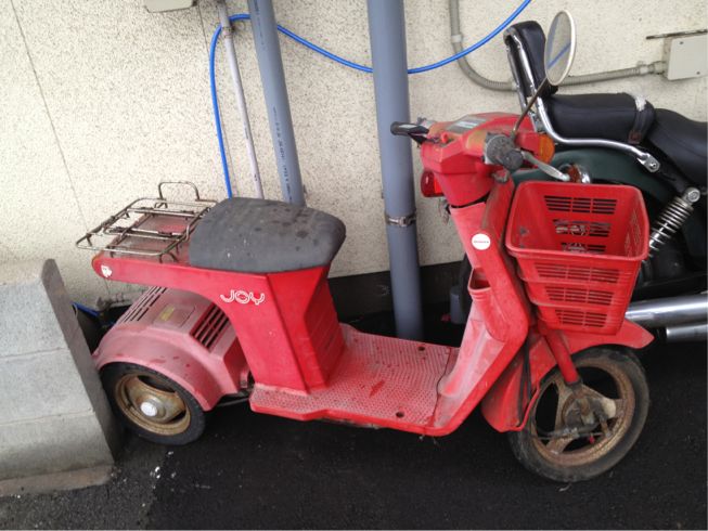 今回の車体、ジョイも面白いモデルです。3輪でありながら非常に軽く、車幅も今の見慣れた2輪スクーターと大差ありません。