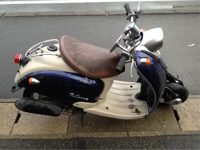 地元の新聞販売店さまからの買取車です。最近は電動タイプのスクーターに買い替えてる店も多いです。早朝の静かさを邪魔しないよう、住宅街を回る地域の販売店は特に。