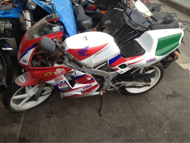 ホンダのレーサーレプリカモデルです。大きいですが、これでも50cc。原付免許で運転できます。