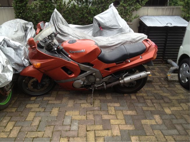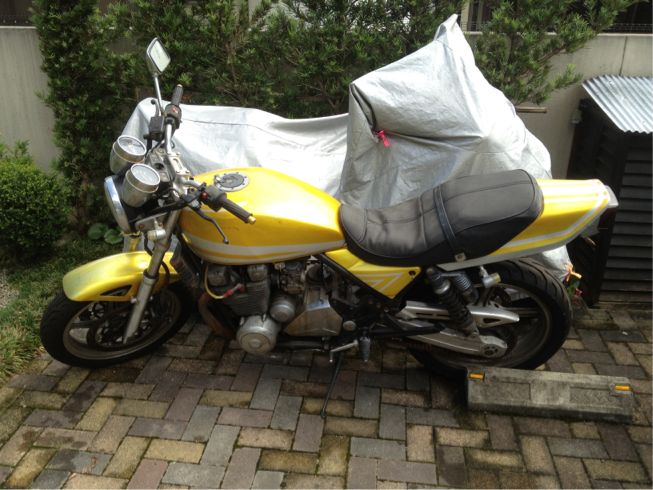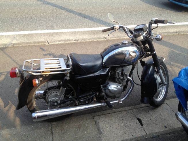 なんかいろいろ違うパーツが付いてたり、付いてるべきものがついてなかったり、という車体です。でも、フロントフォークがノーマルなのが嬉しいですw