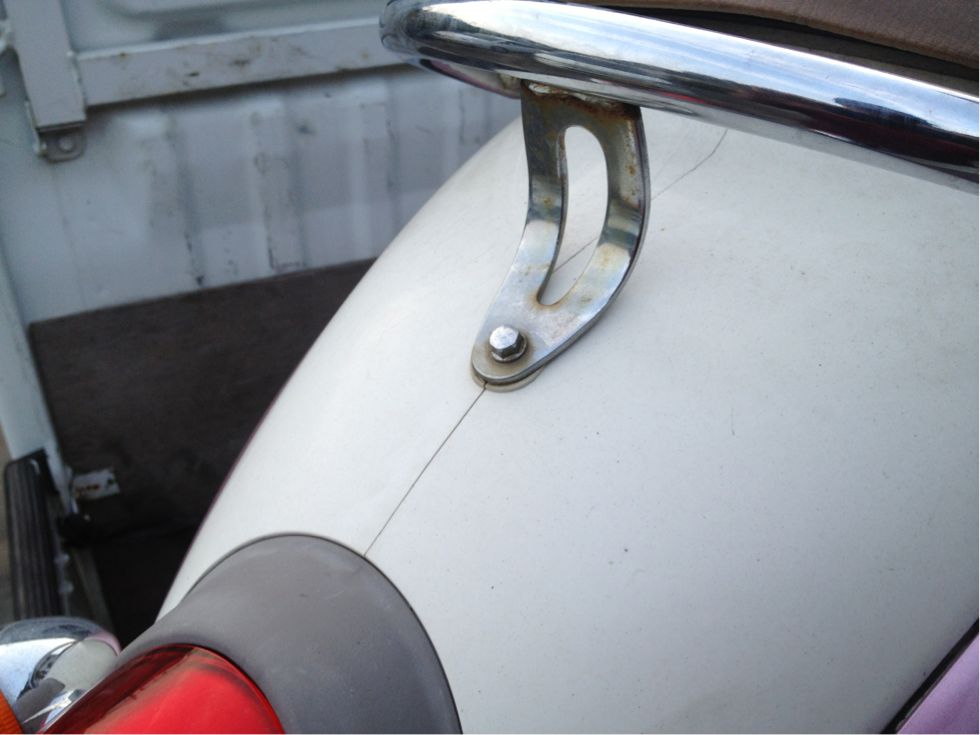 放置状態だった所を誰かにイタヅラされたようです。ガソリンを盗まれたらしく、カバーが無理矢理こじ開けられていました。