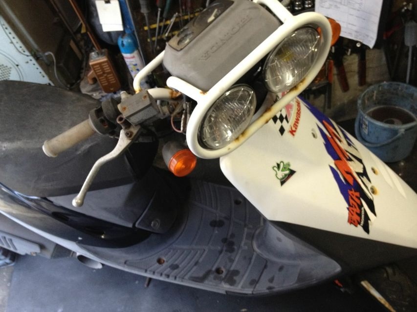 …のはずですが、写真の車体はロンホイ、リヤカット、社外マフラー等々、ノーマル車とは程遠い形になってます。