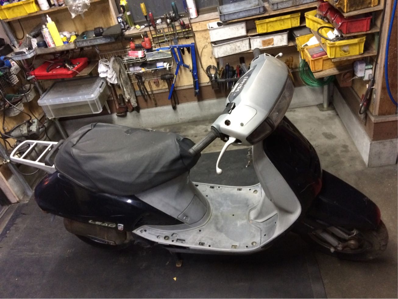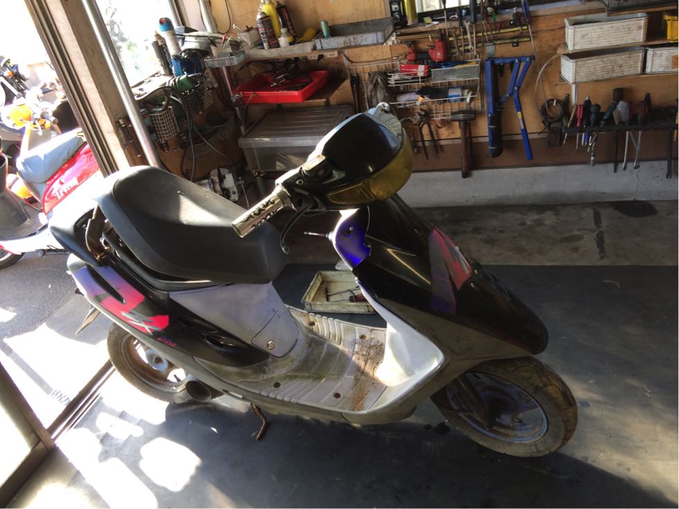 20年以上前のモデルです。2サイクルで、メットインスクーターが出始めた頃のモデル。この頃のモデルはメットインボックスが取り外せないので、キャブレターのオーバーホールも一苦労でした。