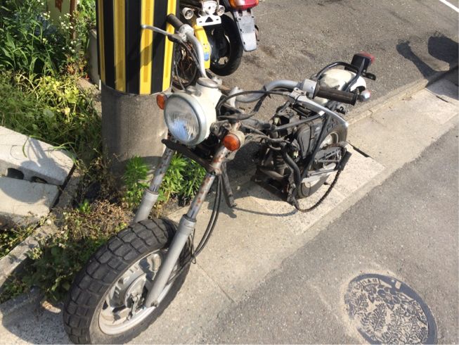 盗難戻り車体、お巡りさん見つけてくれた時はすでにこの有様だったとのこと。