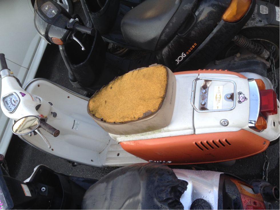 屋根付き3輪スクーター。最新モデルは4サイクルエンジンを搭載してますが、写真の車体はその前のモデル。古い部類の車体です。