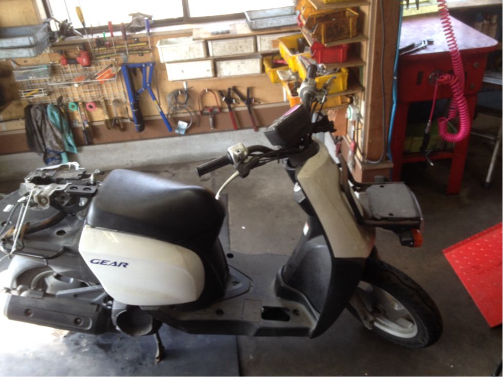 ギアは業務用に特化したスクーターです。そのギアシリーズの中では最新モデルになります。水冷4サイクルの静かなエンジン。まだ新しくなかなか出てきません。