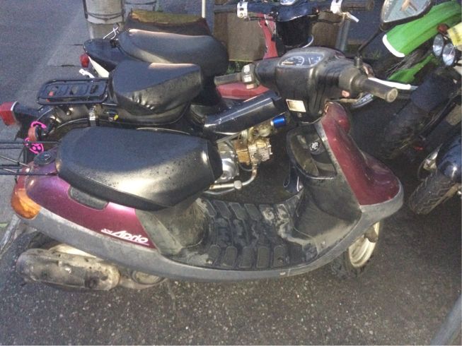 ヤマハの名車です。アプリオの前期型。そろそろ17、8年経つモデルですが今でも現役の車体を街でよく見かけます。