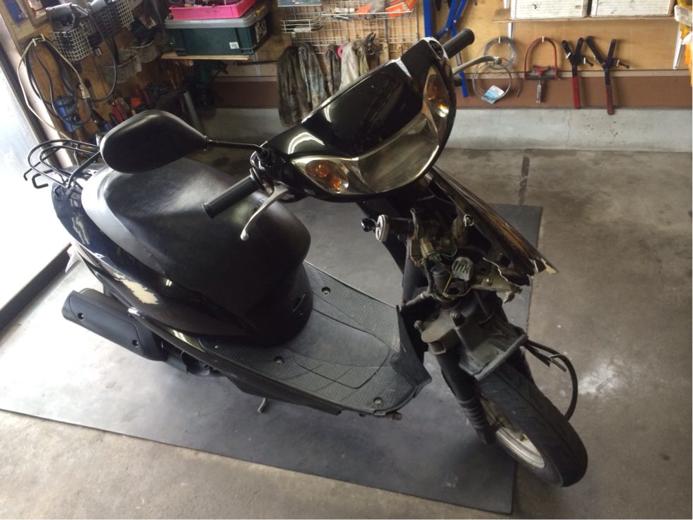 事故車です。この状態でもエンジンかかるし自走もできるから驚きですw