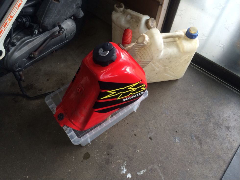 とりあえず燃料タンクを覗いてみるとサビサビ状態。急いではずして、沸騰させてた花咲Gを投入し放置です。