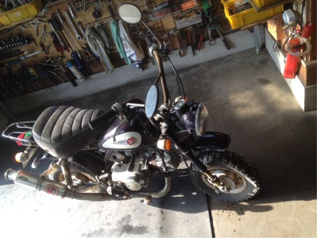 最も有名なモデルじゃないかと思います。小さなボディにカブ型エンジンを搭載。全長が子供用三輪車ぐらいなので、これが公道を時速60kmで走ってる姿はかなり印象的かと。改造パーツも世にたくさん出回っていて、これがまあ良くないのですがエンジン痛めて回収する例が多いです。写真の車体もそこが残念。