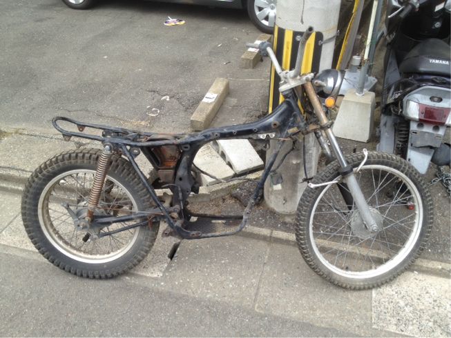 随分古く珍しいモデルです。といっても写真のような有様。エンジンはおろか名残もなくなった状態です。