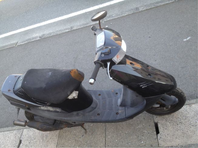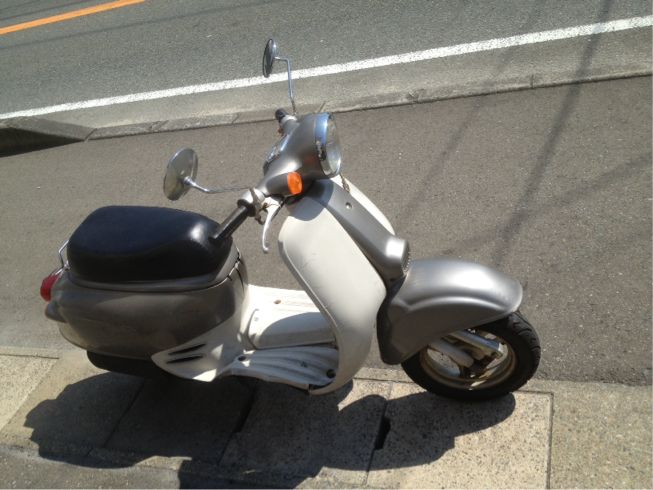 よく回収するモデルの1つです。中国ホンダからの逆輸入モデルなのですが、生産時の塗膜の問題で、5年目くらいでベロンと塗装が禿げてきます。写真の車体にもそんな兆候が。