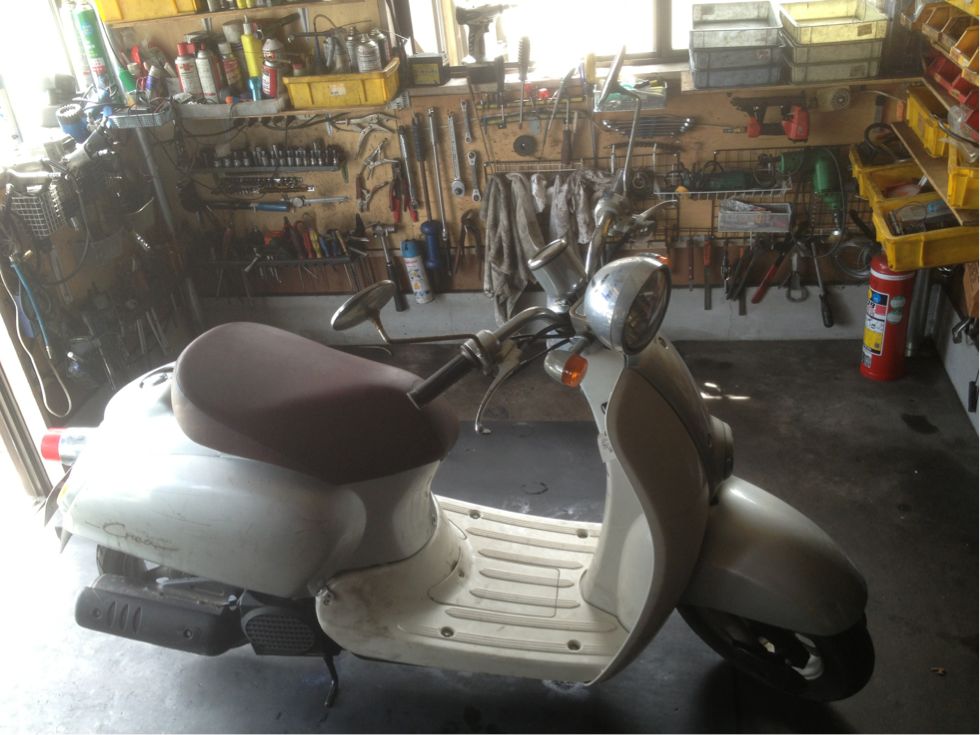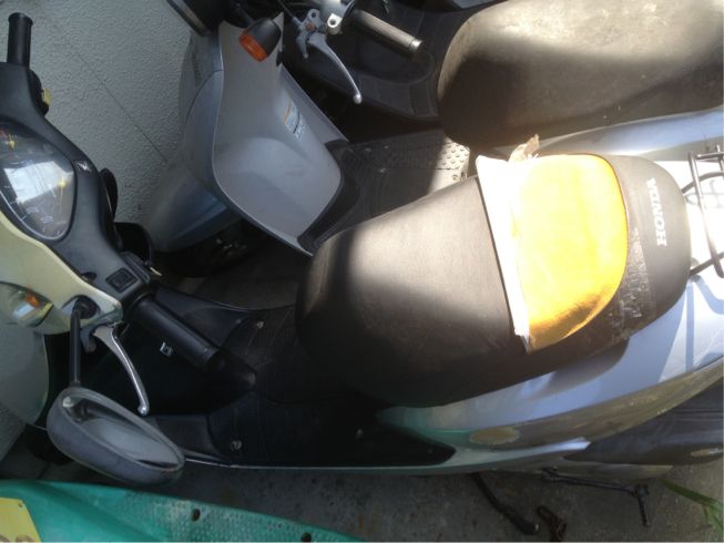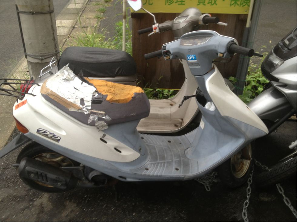 空冷式4サイクルのディオです。よく回収します。このモデルは初期ロットで塗膜に欠陥があったらしく、5年くらいで写真のように塗装がベロンと剥げてしまうようです。