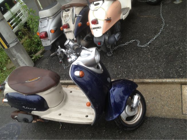 水冷4サイクルのビーノです。最初に販売されてからそろそろ10年、ですが回収例はまだ少ない方です。きちんとメンテナンスしてれば結構耐久しちゃうモデルです。