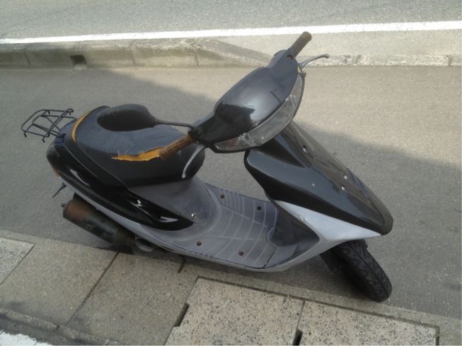 メットインになって最初のジョグです。20年近く前の車体、外装も割れ割れ。無事な部分がありません。