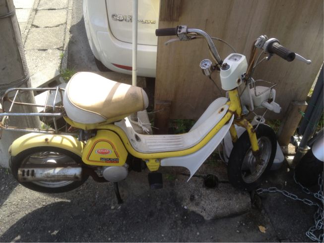 自転車よりも小さな車体です。かつてはあの森晶子さんがCMで乗ってたとかいう伝説のモデル。最近は全く回収例がなく、今回久々にお目にかかりました。
