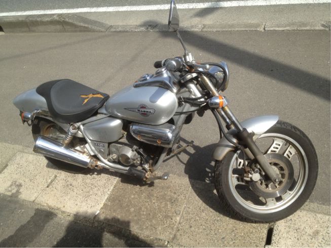 マグナのなかでも初期型ロットです。シート破れ、Rフェンダー割れ、タンク他サビ多数、欠点を挙げればキリがないですが、でも私的には、今回のマグナ、結構綺麗な状態です。