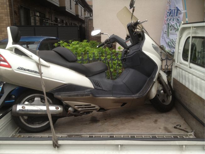 スカイウェイブ自体、歴史が古いモデルですが、写真の車体は比較的にも新しい。このような丸みをおびたモデルは07年あたりからです。