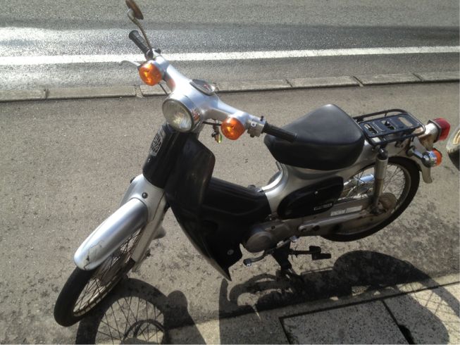 こちらはリトルカブではなく、スーパーカブの記念モデル限定バージョン。カラーリングがよく似てるのですが、タイヤホイールの大きさが違います。